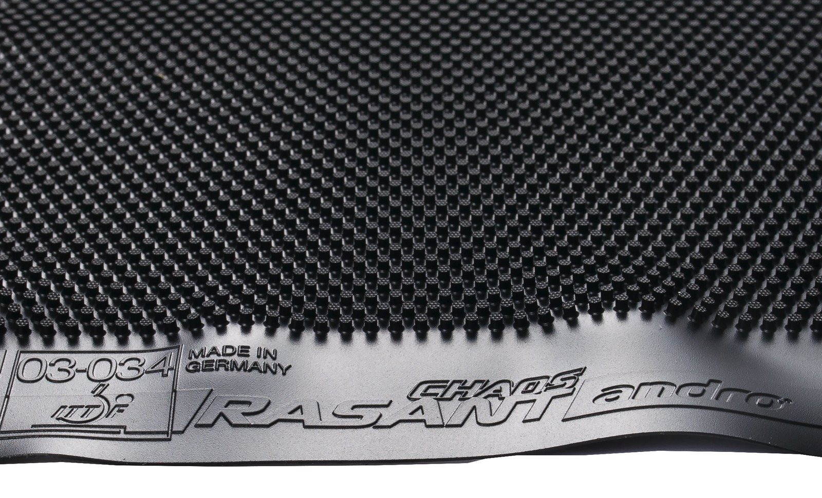 Rasant Chaos is a very special long pips rubber designed with modern defense chopping in mind. Relatively fast and with speedglue effect, it can chop very well at long distance sending back dangerous balls that can vary from very heavy with underspin to floating dead balls depending on the stroke you use. Due to its speedglue effect and tension it is also very effective for offensive strokes close to the table.