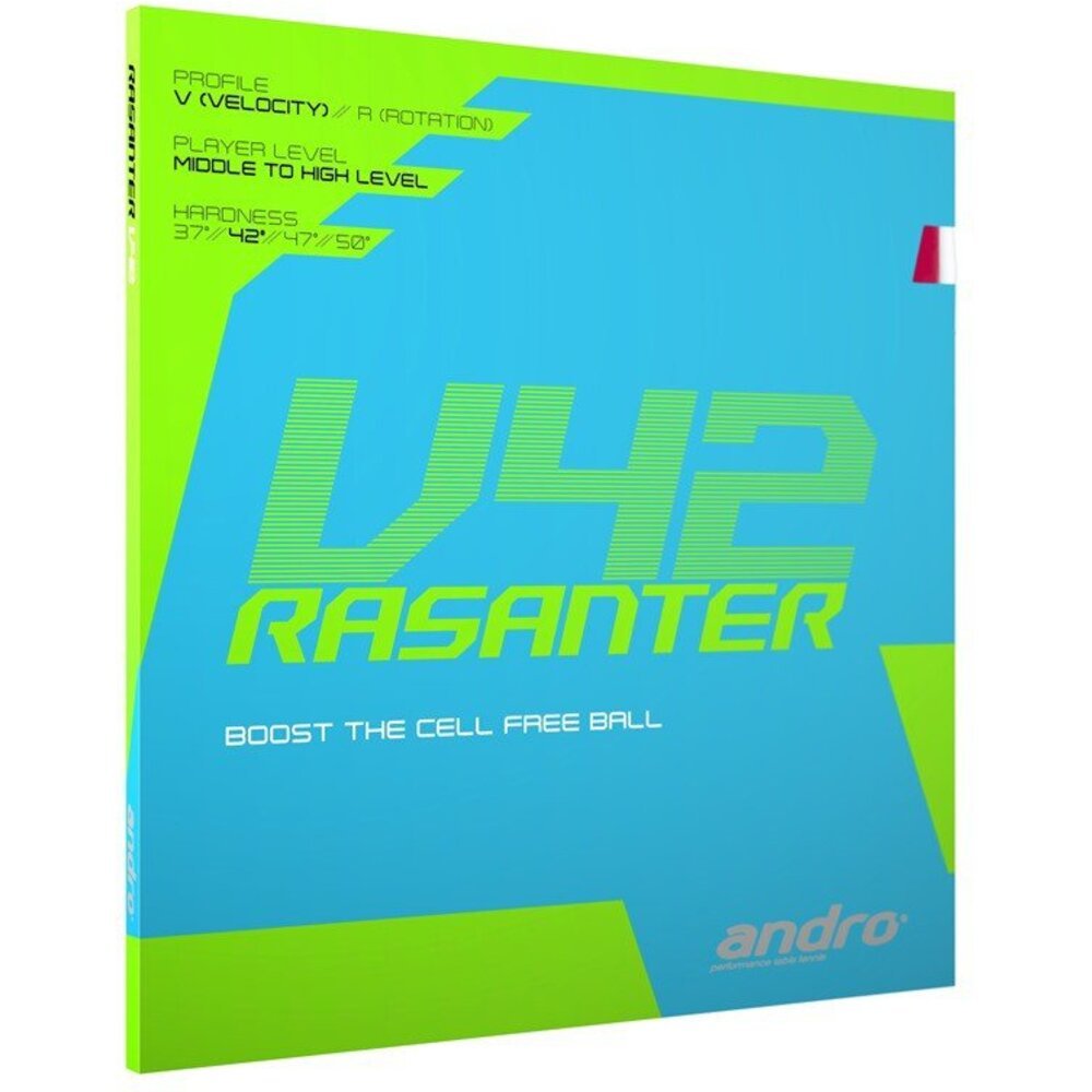The topsheet of the Rasanter rubbers has a high degree of glossiness to compensate for the loss of rotation after the introduction of plastic ball. V is for velocity. Due to the special pimple geometry, these rubbers have maximum speed potential and allow you to play at higher speeds and flatter trajectories. The Rasanter V42, though similar is style to the V47 is a bit softer and more controllable. It is focused on being able to drive and loop drive but provides a few extra notches of control especially on counter loops. An excellent choice for players who like to block and flat hit quickly while still making sure that they have the degree of control necessary to make sure the ball lands on the other side of the table.