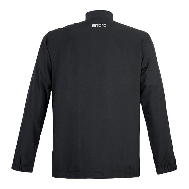 Perfect club and team suit Excellent body climate thanks to the breathable 4-way stretch functional fabric. Pleasant, lightweight material for maximum comfort. Simple design with elegant accessories. Two zip pockets on the sides. Chest pocket with zip. Diagonal Andro logo tape on the sides Main material: 88% polyester microfiber, 12% elastane Lining: 100% polyester, functional indoor fabrics