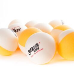 The Bi-Colour balls are designed in order to better judge the rotation trajectory of a ball, they are great for learning and understanding the spin on the ball, for use in coaching and training sessions. Two colours of hemisphere are combined into one. While the table tennis ball is under the high speed-movement, it will cause visual changing, which would increase the judgement on rotation. BI-colour ball was jointly developed by the Chinese Table Tennis Association (C.T.T.A.) and Double Happiness. They selected ABS as the material.