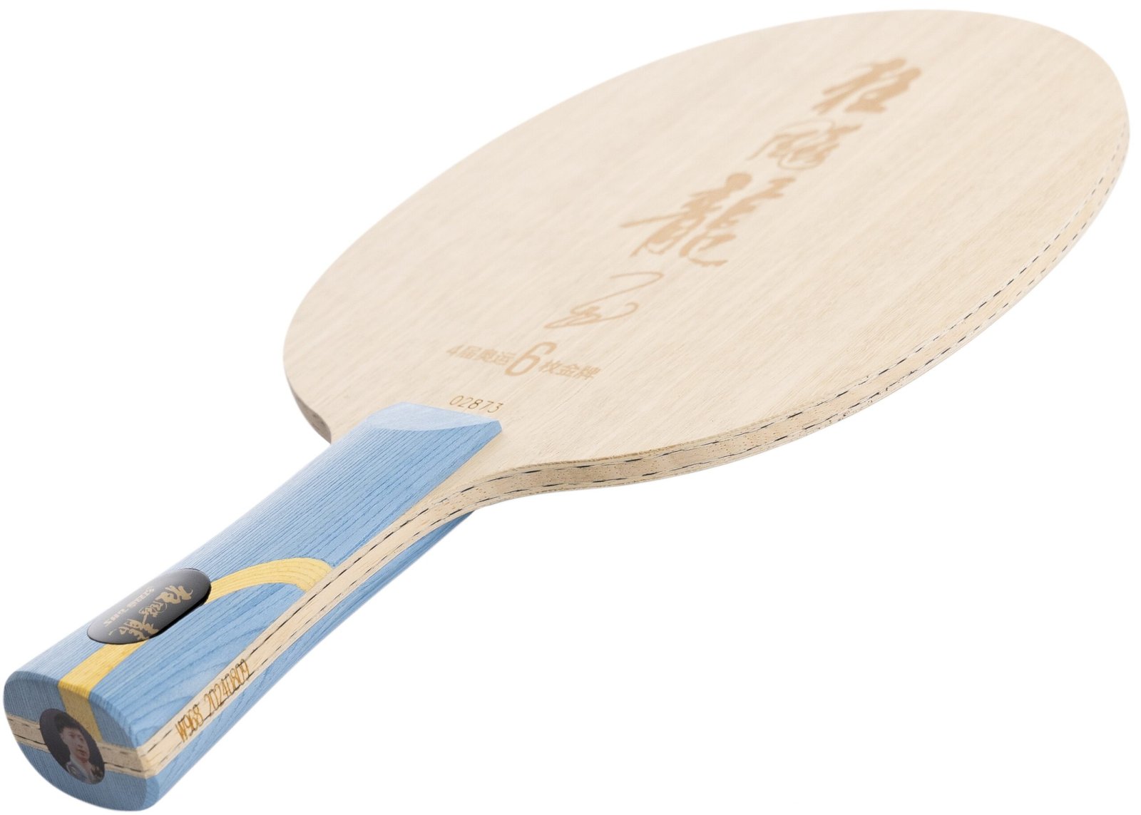 The full name of this commemorative blade is the DHS Six-Gold-King Hurricane Long 5S, created to honor Ma Long’s achievement of winning six Olympic gold medals. Released in limited quantities, it represents both a collector’s treasure and a high-performance weapon for elite play. Structure: 5-ply wood + 2 inner ALC fiber classic construction, Inner layer of W968 yellow-black arylate-carbon, well known for stability and power. On the table, the Six-Gold-King offers a softer, more elastic touch than standard Long 5 blades. Its thicker core provides excellent dwell time, producing heavier, longer arcs and powerful spin-loaded shots. Forehand and backhand play feel solid and supported, with the blade delivering deep, penetrating power for rallies at the highest level.