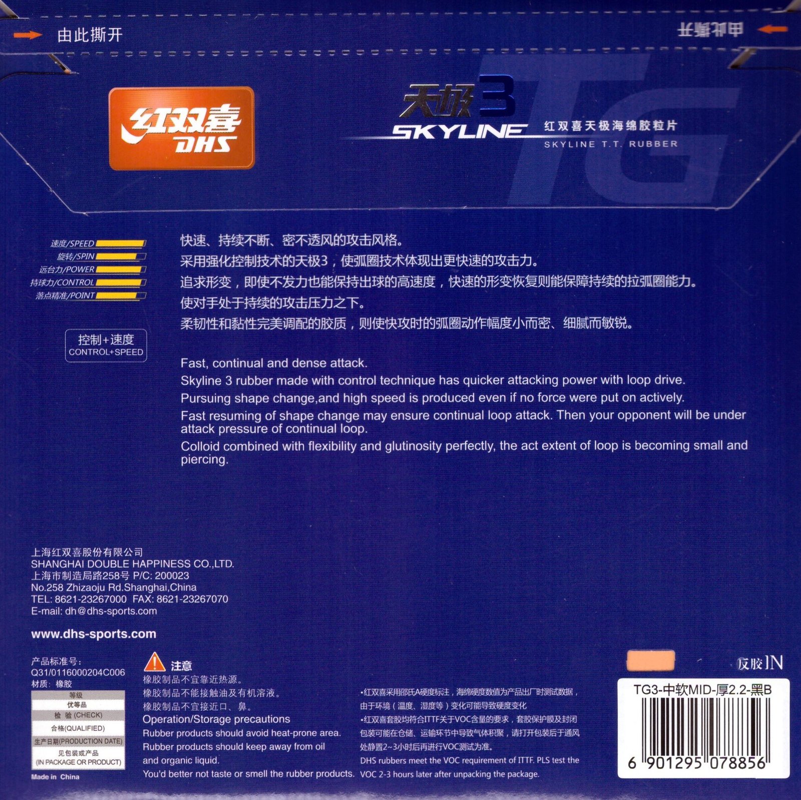 More direct and fast version of Skyline rubber. More speed and power allows to play aggressive topspins near the table or from medium distance without loosing control when playing short game or blocking. Surface – Gripy. Sponge – Hard. Strategy – ALL-OFF.