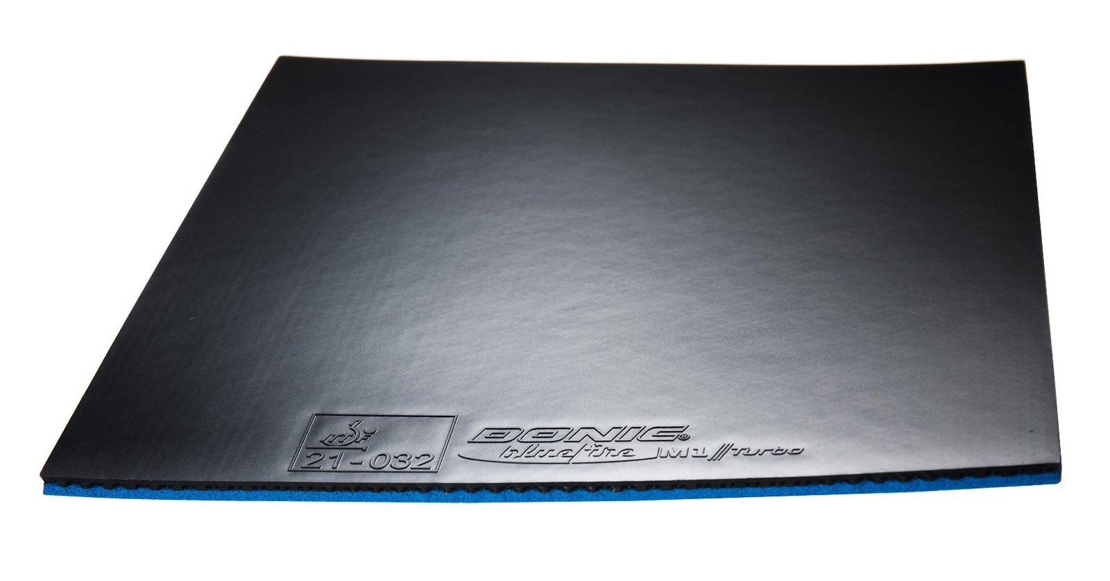 The Bluefire M1 Turbo from Donic is the hardest and fastest of the Bluefire series. The solid 50 degree sponge provides speed and a more linear performance. This means that M1 Turbo produces power in line with what you do with it and put into it. This rubber is designed for aggressive players who can produce full strokes for full power.