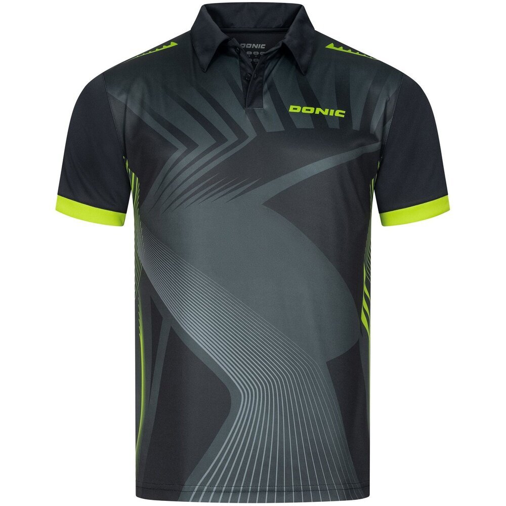 Polo shirt in the base color black with a graphic print in gray/lime on the front. The chest area and solid-colored back provide space for custom prints. The breathable Drylite functional technology wicks away sweat and keeps the skin comfortably dry. The same design is also available as the SECTOR T-shirt in Drylite functional material. Material: 100% Polyester Drylite.