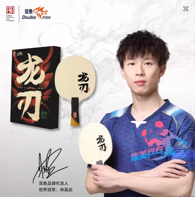 The Double Fish Dragon 1 is a high-class offensive blade designed for advanced players who play with power, precision, and spin. Using a finely tuned 5+2 outer carbon construction, this blade combines the speed of Zylon Carbon with the control and feel of high-grade woods—including a Tung wood core, rarely seen in commercial blades. Outer Zylon Carbon (ZLC) Layers: Positioned just beneath the top ply, ZLC fibers offer a massive sweet spot, lightning-fast rebound, and vibration dampening for clean contact and consistent acceleration—perfect for aggressive topspin players. Koto Outer Ply: The hard Koto surface delivers a crisp, direct feel with fast response, great for initiating attacks and countering with precision close to the table. Ayous Inner Plies: These provide elasticity and balance, acting as a buffer between the hard outer plies and the soft core, allowing better spin development and improved dwell time. Tung Wood Core: A rare and dense core material, Tung wood gives the blade added weight and power transfer, producing excellent stability and a powerful feel on full strokes. Optimized for Offensive Play: The Dragon 1 excels in fast loop exchanges, powerful drives, and third-ball attacks. While fast and firm, it retains enough dwell and control for short game and touch play when needed.