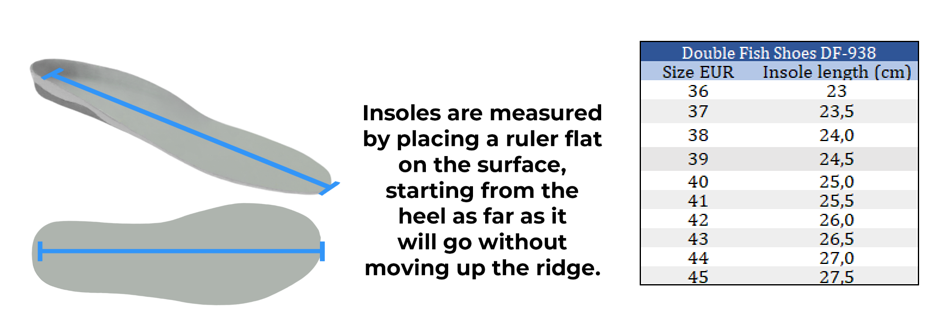 The Double Fish DF-938 table tennis shoes are a perfect choice for players looking for light and flexible footwear that enhances their performance on the table. These shoes are designed to provide you with the comfort, stability, and agility you need to excel in your table tennis game. These shoes offer exceptional flexibility, ensuring that your movements are not restricted in any way. This flexibility helps you maintain your balance during intense rallies and enables you to make those crucial shots with ease. The shoes are equipped with a grippy outsole that provides excellent traction on the table tennis court. You can trust these shoes to keep you grounded while making quick lateral movements. PLEASE CHECK THE SIZE OF YOUR INSOLE IN CM INSOLES ARE MEASURED BY PLACING A RULER FLAT ON THE SURFACE, STARTING FROM THE HEEL AS FAR AS IT WILL GO WITHOUT MOVING UP THE RIDGE. PLEASE CONTACT OUR SUPPORT TEAM IN CASE OF ANY QUESTIONS.