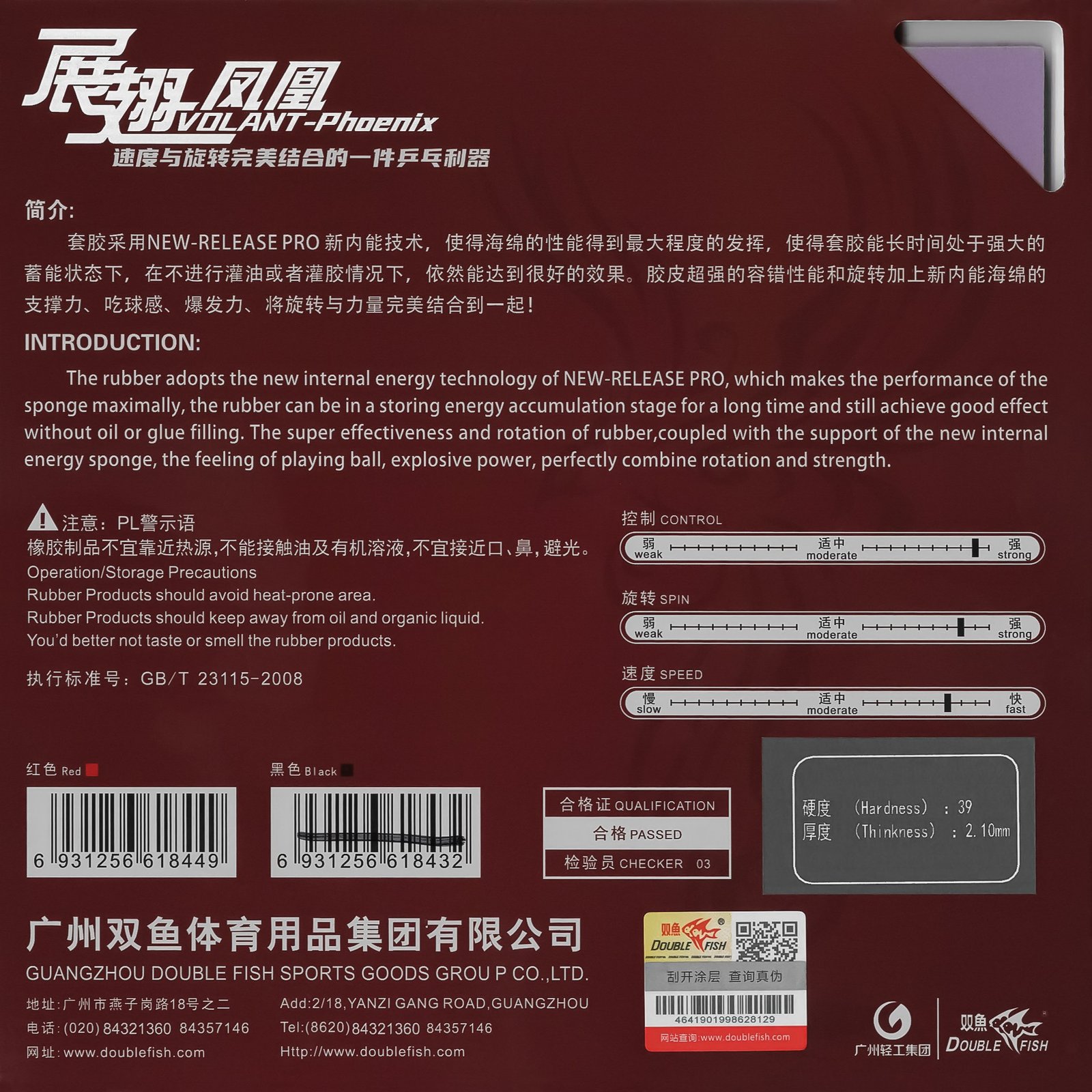 Grippy and quite a hard Chinese rubber. Still, the factory-boosted, 39-degree sponge would not mind an additional layer of booster. Recommended as a forehand rubber.
