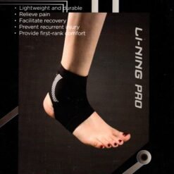 A compact, one-size-fits-all ankle brace designed for the sportsmen. The variety of different materials utilized for the front, back, and inner sides of the pull-on brace was meant to provide maximum comfort as well as the effective protection of the ankle while playing. The front is made of 89% Nylon and 11% Elastane, the back of 86% Polyester and 14% Elastane, and is 100% Nylon on the inside. Other materials used are Silicone, Neoprene, and Polyurethane. M – for shoe size 39-42; L for shoe size 43-46.