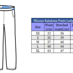 Brushed fabric to enhance comfort. Classic rib pants with two open side pockets. Contrasted tape on the bottom side with Katakana & Kanji wording. Pants made by Mizuno. Material: 58% Cotton, 42% Polyester Sizes: S – XXL