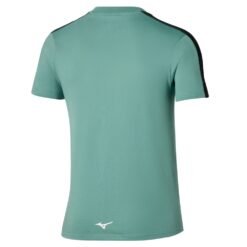 High quality t-shirt for sports and everyday wear. Produced from a pleasant to the touch blend of organic cotton and synthetic material. Simple yet stylish design with the Mizuno logo on the chest and contrasting stripes on the shoulders. Material: Polyester 65%, Cotton 35%. Colour: mineral blue.