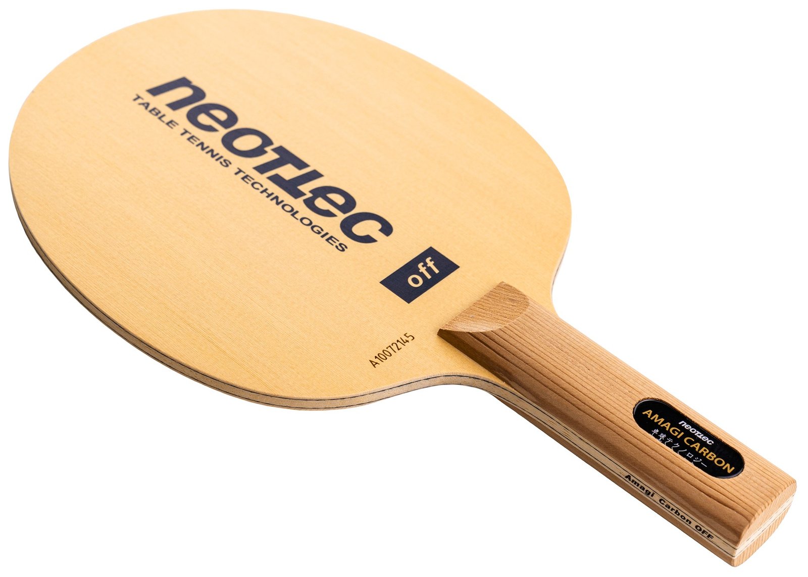 The Neottec Amagi Carbon is another blade from the very successful Amagi family. It was created with precision and feeling for the offensive spin game in mind. It’s a medium weight, around 80g, quite thin, 5,5 mm, carbon blade with slight, pleasant vibration, which means plenty of control when taking a variety of shots, such as top-spins, blocks, chops and smashes. It’s a good choice for the adherents of smart, top-spin based attacking play close to the table and from middle distance.The combination of hinoki wood (Japanese cypress) in the outer layers and the handle made of solid American red cypress, ensures excellent conductivity of the impulses to the hand during the interaction of the ball with the racket and provides an exclusive appearance of Amagi.