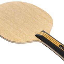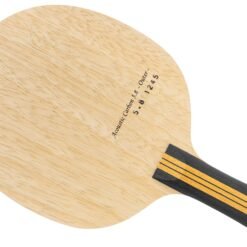 The Nittaku Acoustic Carbon Outer 5.8 blade was enhanced with a 0.3mm thicker center core layer, resulting in a construction specifically aimed at improving speed and power. The thicker core increases the blade stiffness, reducing the flex often seen in thinner blades. This adjustment enhances the energy transfer from the paddle to the ball, delivering a faster rebound and allowing players to generate higher speed on their shots with less effort. With the carbon layer positioned just beneath the outer wood ply (“Outer”), this blade offers direct and immediate feedback upon impact, making it a preferred choice for players with a fast, offensive style. The outer carbon structure complements the thickened core by creating a larger sweet spot and improving stability, which is advantageous in high-speed play and counter-attacks. The increased core thickness and outer carbon layer make this blade highly suitable for aggressive players who need both speed and control when playing close to the table. Made in Japan.