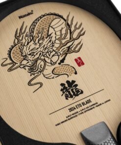 The Nittaku Eto Blade 2024 is a limited edition blade featuring the message “unlimited progress” with the Dragon symbol holding the ball with power and courage. The ETO blade was produced in Japan using premium Kiso Hinoki wood and modern carbon technologies. The carbon layers are situated between Kiso Hinoki outer layers and the core ply. They are produced from the revolutionary elastic rubber carbon which improves the playing properties of the blade. Making the handle, not from wood, but from carbon material, was challenging. The carbon in the handle is very light, reducing the total weight of the blade to approximately 75 gr. The Nittaku Eto Blade 2024 Dragon is slightly thicker and faster than the Nittaku Eto Blade 2023 Usagi.The size of the bade is 157 mm x 150 mm. Made in Japan.