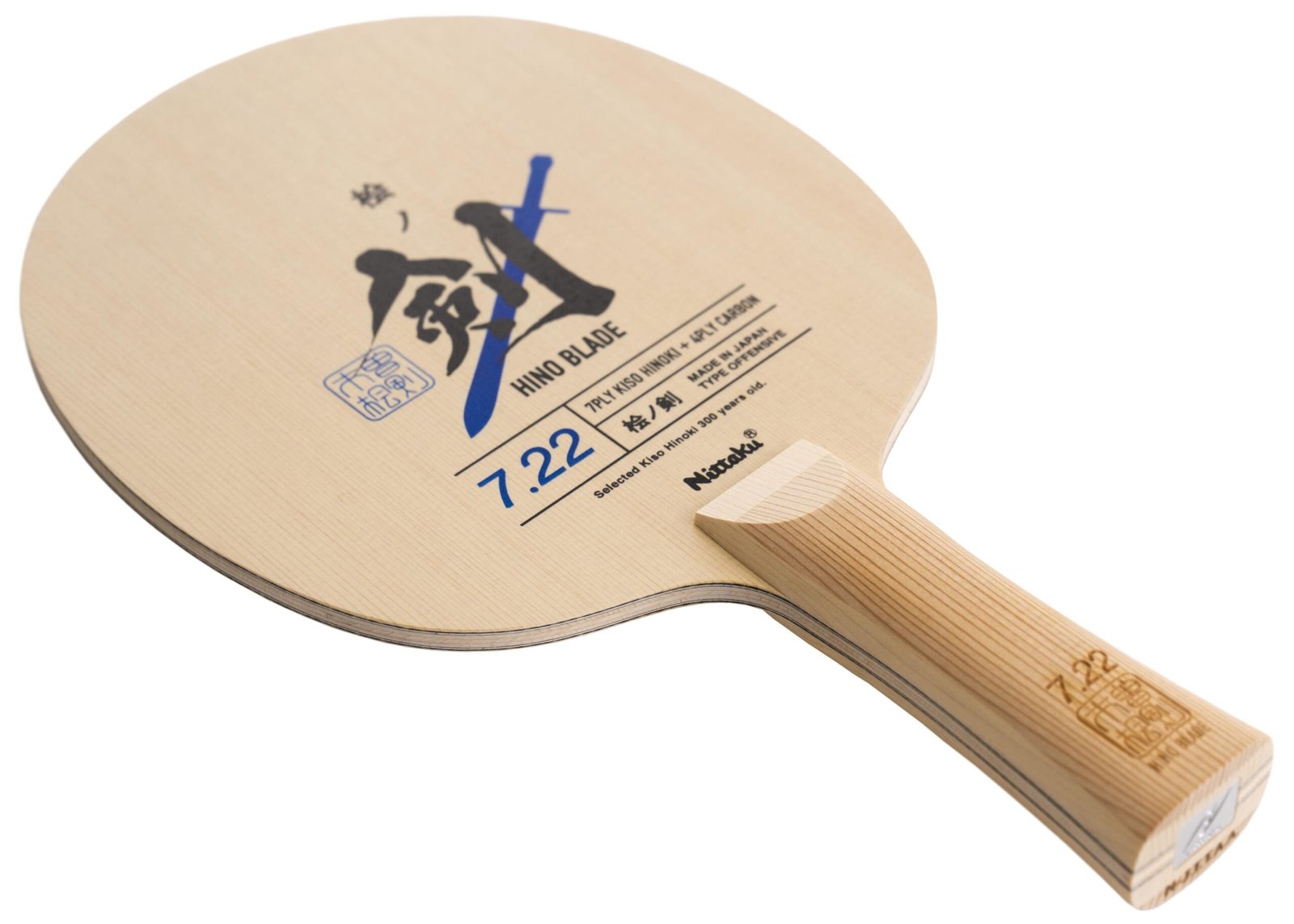Nittaku Hino Blade 7.22 is a slower blade compared to Nittaku Hino Blade 5.22. It has a multilayer construction, 7 layers of the famous, 300 years old hinoki wood, with 4 layers of carbon material, which is unusual for Nittaku. The carbon layers are located very close to the top Hinoki layers. Due to how lightweight Hinoki wood is, the blade does not feel heavy at all. This blade will be much liked by those who feel a passion for thin carbon blades. Made in Japan.