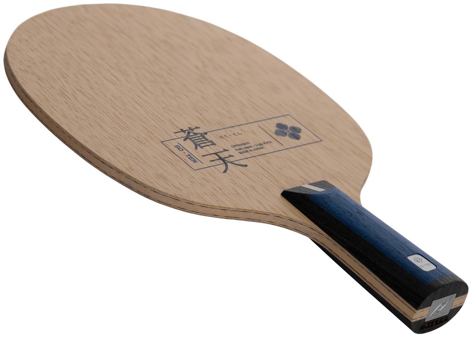 Nittaku So-Ten is an inner type of blade with KVC3 carbon fibers placed on the core ply. Inner type blades have the carbon ply under two layers of wood, while outer-type blades have the carbon ply under one layer. This construction provides an incredible sense of touch and spin due to KVC3 carbon elastic properties. The size of the blade: is 158×152 mm. Made in Japan.