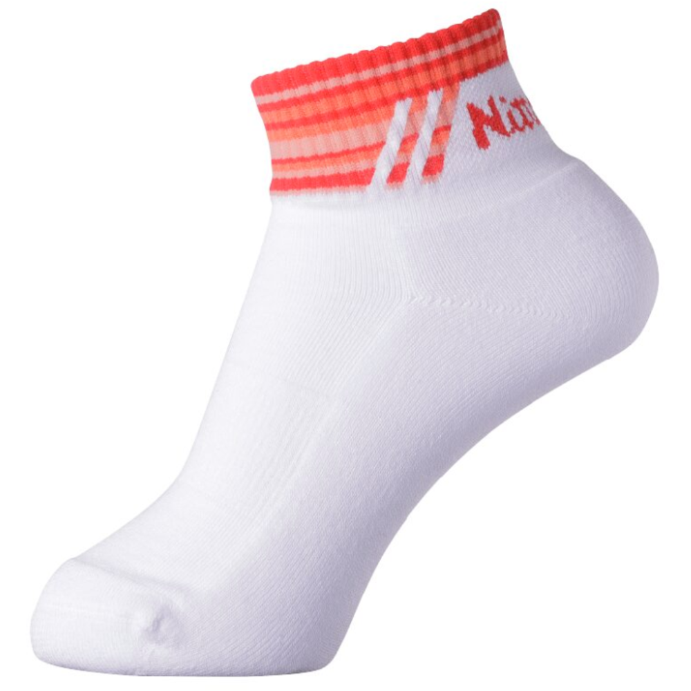 Nittaku Toele Socks. Crafted in Japan from a high-quality blend of cotton, acrylic, polyester, nylon, and polyurethane, the Nittaku Toele Socks are designed for performance and comfort. These socks feature sweat-absorbing, quick-drying, antibacterial, and deodorizing properties, making them ideal for intense training or competition. With a high-gauge knit, the fabric is finely woven to provide a snug, contoured fit, while the regular length offers classic coverage and support. Designed to move with you and keep your feet feeling fresh throughout the game.