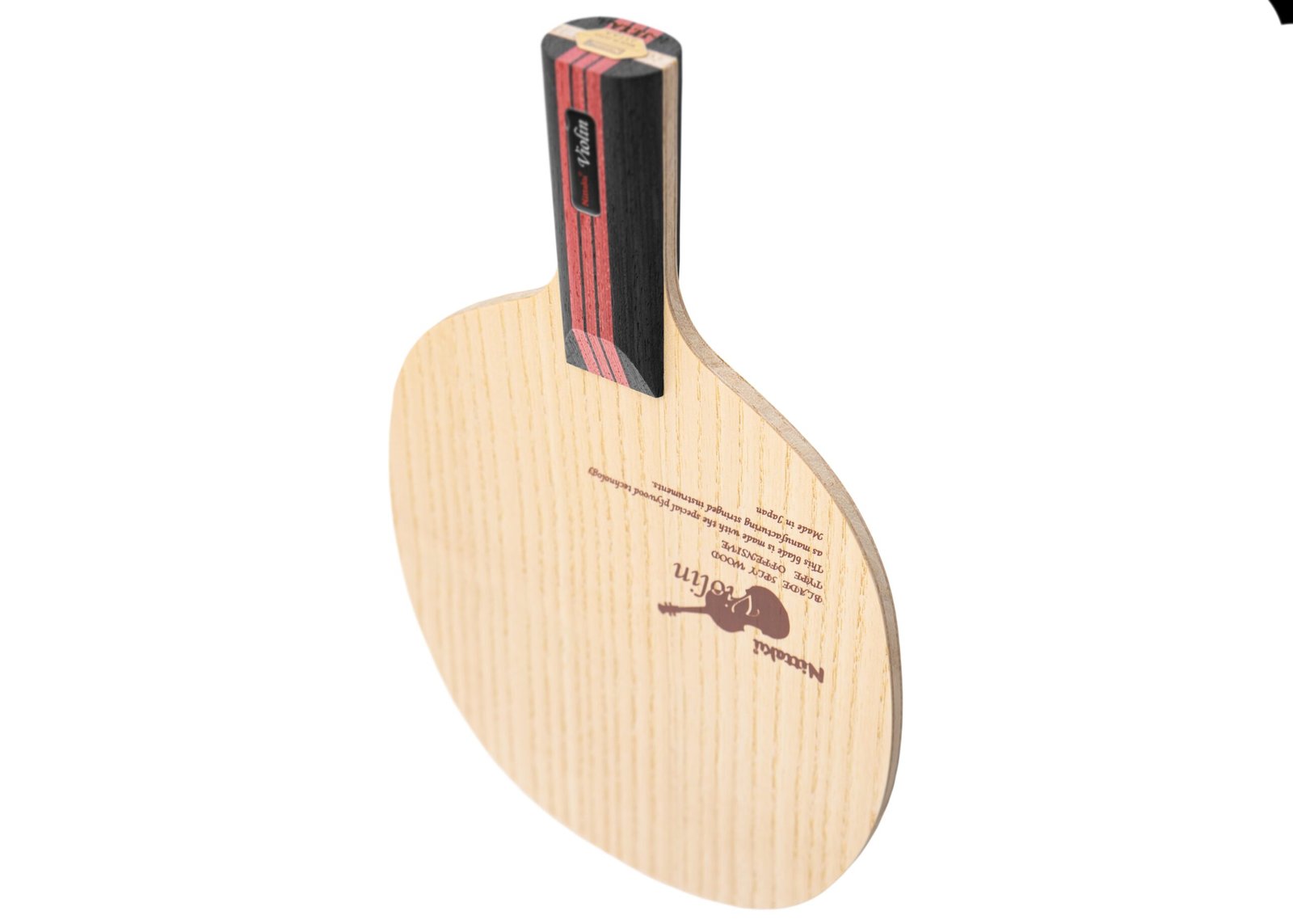 The Nittaku Violin was made using the same principles used in making string instruments. In the instrument blade series, this blade is the lightest and has the smallest head size while also being the thinnest. Despite having a harder feeling than the Nittaku Acoustic, the Violin is slightly slower and has more control. Made in Japan. Nittaku has changed the lens design of the blade, but the blades themselves remain the same. Once we run out of the old lens design, we will begin sending out the new version.
