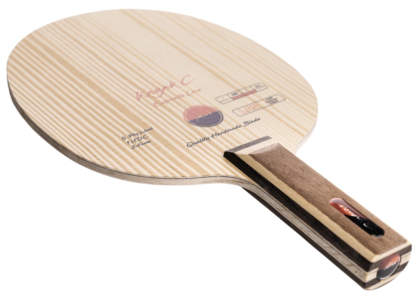 Red + Black Kazak C – Asymmetric Combi Blade for Material Specialists. The Kazak C brings dual performance to a single frame, crafted for players who exploit spin variation and twiddling tactics. Its forehand side conceals a soft inner carbon layer, adding bite, speed, and directness for aggressive strokes. In contrast, the backhand side remains all-wood, delivering extended dwell time and optimal control for spin reversal and disruptive play. Weighing approximately 89 g with a slightly oversized 165 × 158 mm head and a slim 5.6 mm profile, the Kazak C offers extended reach without sacrificing feel. It’s ideal for modern material players who demand contrasting behaviors on each wing, whether you’re pressing the attack or frustrating opponents with deceptive returns. Outfit the carbon side (FH) with a medium-hard tensor or tacky Chinese rubber to finish rallies with authority. Pair the all-wood side (BH) with long pips, short pips, or anti-spin to maximize control, spin disruption, and floaty placements.
