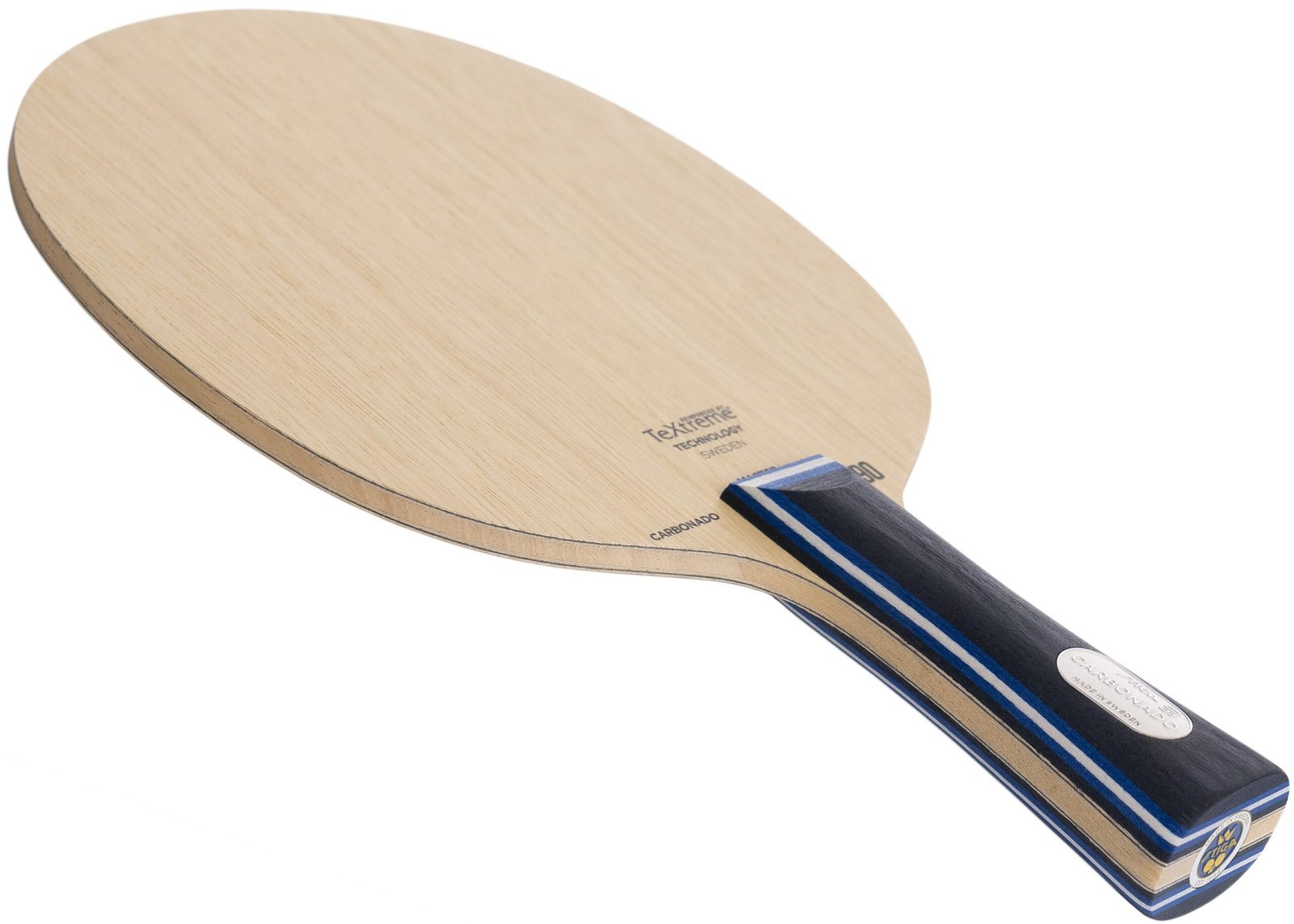 Stiga Carbonado 90 is an offensive blade built with TeXtreme® carbon placed at a 90° angle, providing a stiffer and more direct playing feel. This construction delivers powerful acceleration, a long trajectory, and excellent stability when driving and counter-attacking. The Carbonado 90 suits players who prefer to take the initiative with fast, aggressive topspin and continuous pressure. Compared to the Carbonado 190, the Carbonado 90 offers a more solid and linear feedback, making it ideal for offensive players who value precision and consistency in high-speed rallies. Made in Sweden.