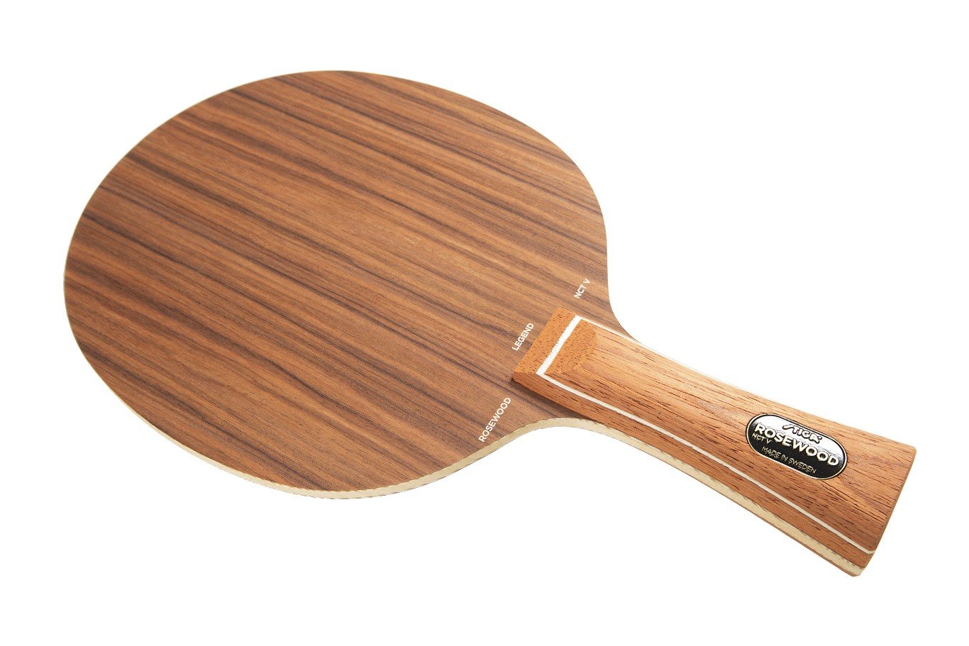 Stiga Rosewood NCT V is a 5-ply offensive blade made from precious and rare rosewood, offering a softer touch and more flexible feel compared to the Rosewood NCT VII. With its NCT (Nano Composite Technology) surface treatment, the blade provides enhanced speed and a clean, crisp contact while maintaining excellent control and sensitivity. Compared to the Rosewood NCT VII, the Rosewood NCT V offers more dwell time and a higher degree of touch, making it ideal for players who rely on spin variation, placement, and controlled attacking play. It excels in close-to-the-table rallies, flicks, and precise topspin exchanges. Made in Sweden.