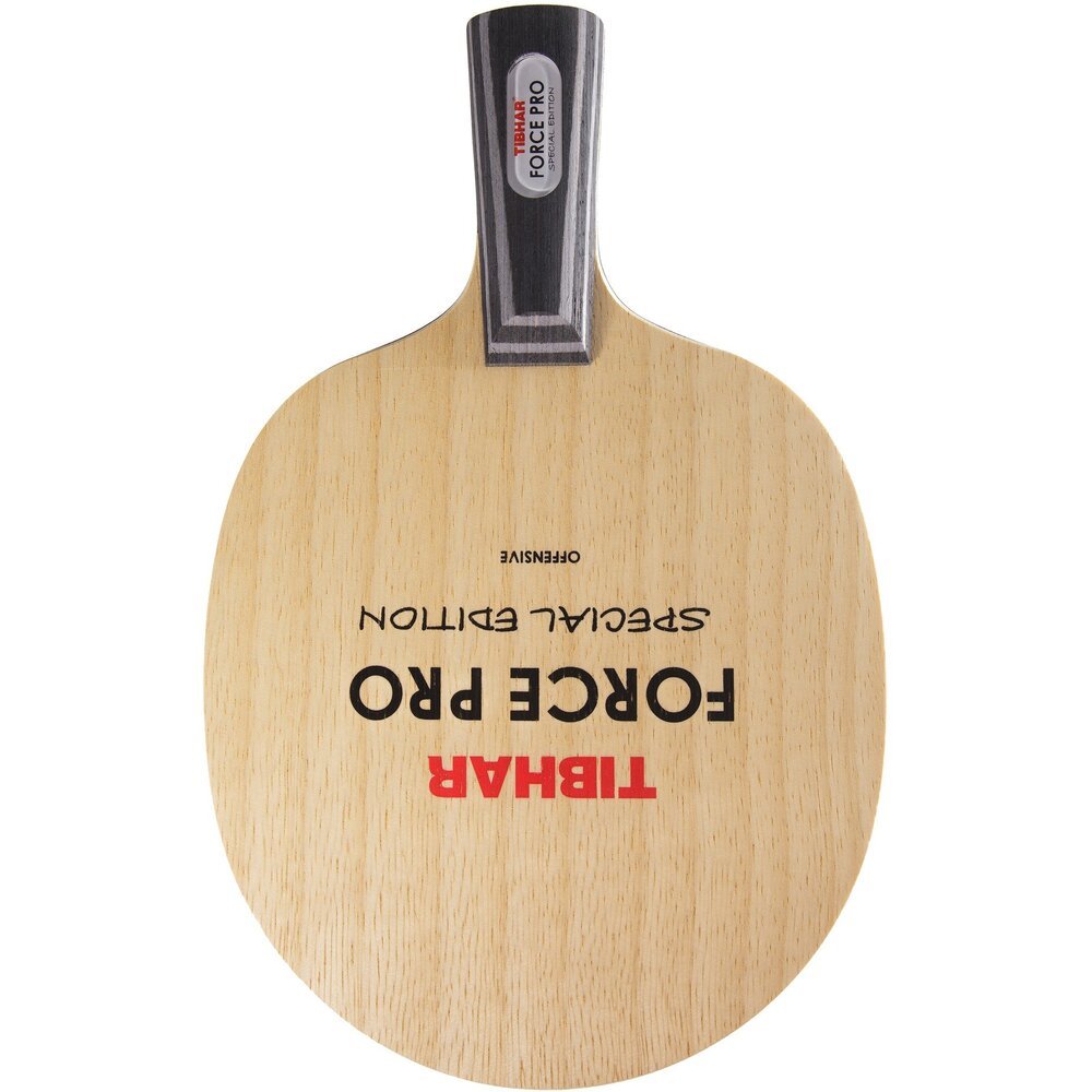 The Force Pro Special Edition is a TableTennis11 EXCLUSIVE item. This blade takes the beloved Force Pro Black edition and offers a newer, thinner, and lighter handle. This handle slims down the beefier handle found on the Black Edition and redistributes the balance of the blade closer to the head. This ultimately results in an increase in spin, speed, and feeling. This blade is an excellent choice for players looking for controlled power.