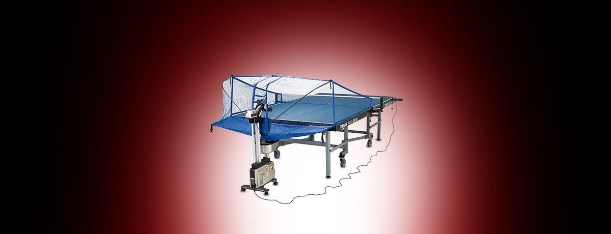 High-quality and robust table tennis robot. Easy handling. With foldable net and wheels. Large variety of different playing programmes with remote control. Complete set of exercises with up to 999 balls at a time and 11 different ball positions on the table. The few pieces subject to wear are all replaceable. Supplied with a ball collecting net
