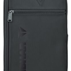 Stylish padded single cover produced from water-resistant material. Fits in one or two rackets. Additional small compartment on the front side of the cover. Solid two-way zipper. Material: 100% polyester. Size: 31 x 20 x 3 cm. Colours: blue and black.