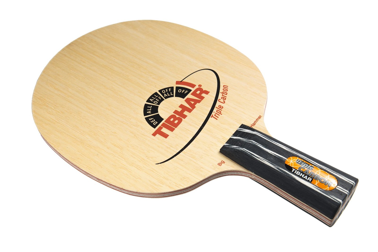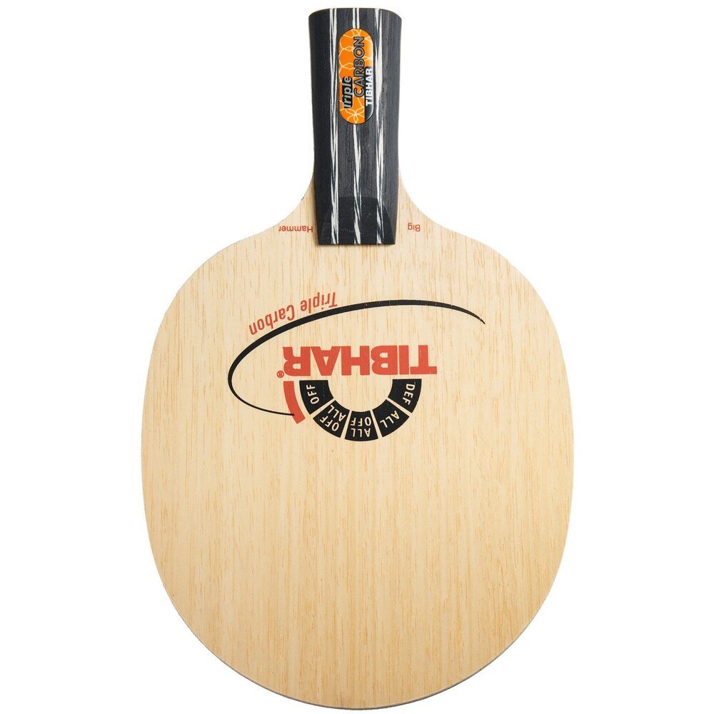 The weapon for the uncompromising attack. The three carbon layers confer both high stability as well as an absolute big reserve of speed. The Ayous layers and the Balsa middle layers give this blade the necessary control. This is the ideal blade for players preferring speed and willing to compensate the loss of speed due to the ban of speed glues. The most popular item among Tibhar carbon blades.