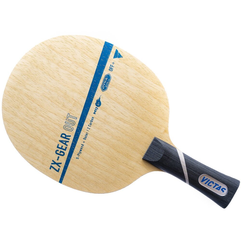 VICTAS ZX-GEAR OUT is the new Power Off premium blade “Made in Japan”. The innovative new Zexion® carbon fiber which is placed directly under the outer ply provides for fantastic stability and power. This highly elastic carbon fiber boosts the impact energy of the ball and increases the energy transfer upon ball contact (“Rebound Effect”). The result is a fast premium offensive blade with ultimate Sweet Spot featuring a new definition of dynamics, explosiveness, and precision.