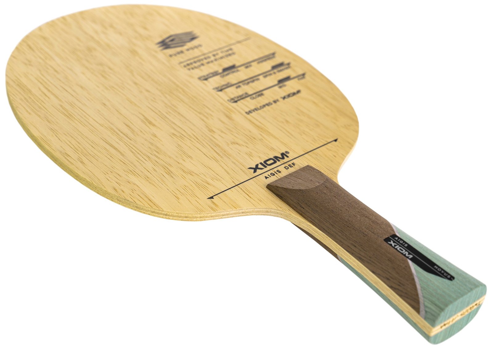 AIGIS is a defensive blade of enhanced ability of counterattack. Instead of usual Willow wood, Limba is used for the top layer of the 5-ply construction for more speed. Its thickness is 5.5 mm, which is the same as that of traditional all-round blades. But, inner layers were adjusted for the giving AIGIS optimal characteristics as a “”defensive”” blade. As the result, AIGIS has stability of cut defense and speed for all-round play at the same time. Its accurate and secure feel let AIGIS be suitable blade even for traditional defensive strategy. For modern defensive players who frequently use counter topspin from forehand, AIGIS provides sufficient speed. Especially when combined with “”Hyper Elasto”” rubbers such as VEGA ASIA on its forehand side, AIGIS can be actual all-round weapon.