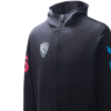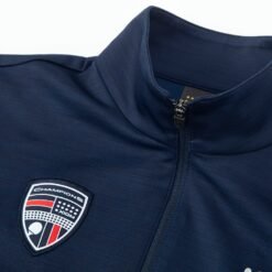 Stylish tracksuit jacket with high collar. Produced from highly-quality, elastic fabric with melange pattern. Can be perfectly matched with Pants Olion. Material: 93% polyester, 7% polyurethane. Colour: navy.